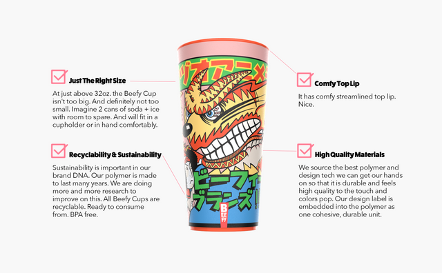 All of our products are made to be BEEFY -> long lasting, reusable, durable, dishwasher safe, and love-inducing.